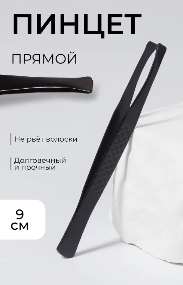 Пинцет прямой, широкий, 9 см, чёрный