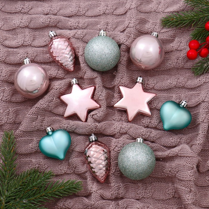 Набор украшений пластик 10 шт "Джоан" розово-зелёный