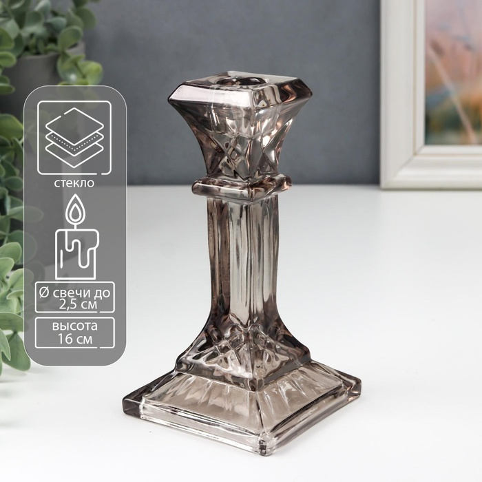 Подсвечник стекло на 1 свечу "Колонна прямоугольная" фиолет прозрачный 16х8,6х8,6 см