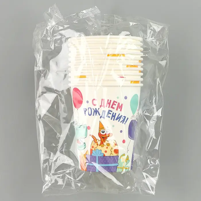 Стакан одноразовый бумажный "С днём рождения" пиксели, набор 6 шт, 250 мл