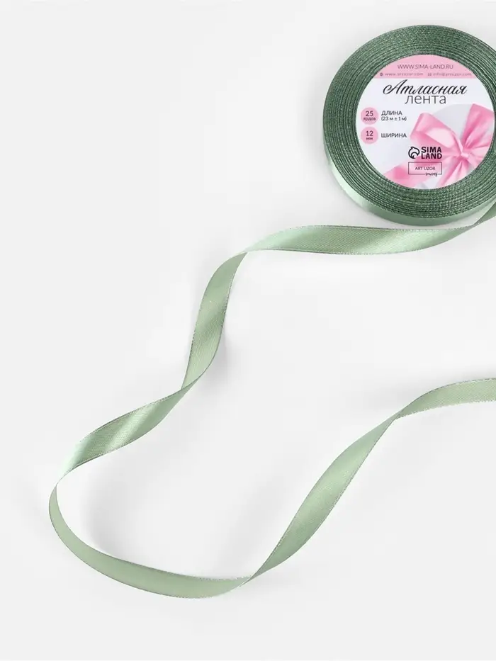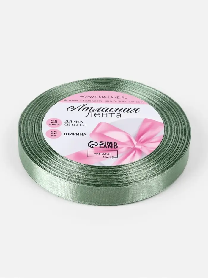 Лента атласная, 12 мм, 23±1 м, фисташковая №65