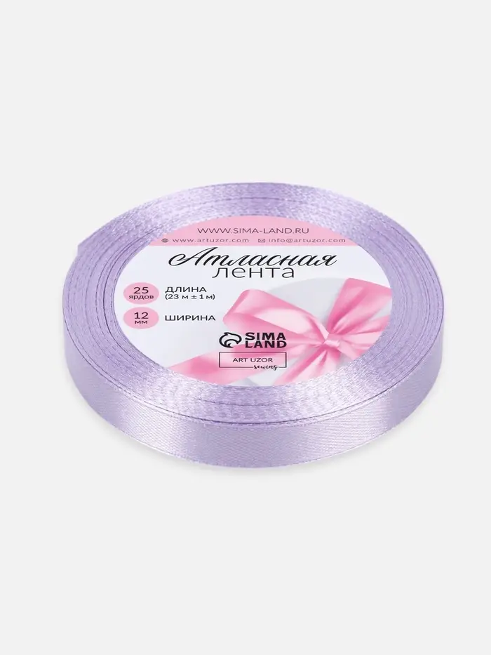 Лента атласная, 12 мм, 23±1 м, светло-сиреневая №290