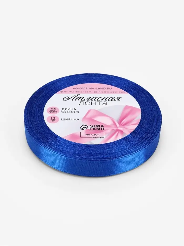 Лента атласная, 12 мм, 23±1 м, синяя №40