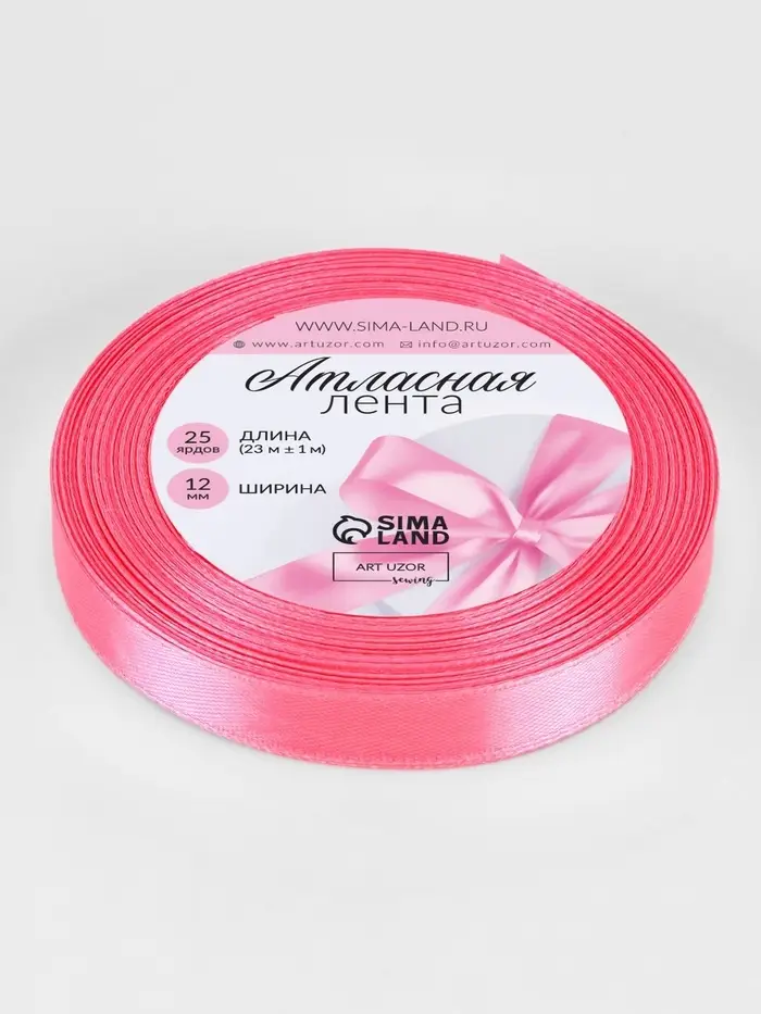 Лента атласная, 12 мм, 23±1 м, насыщенно-розовая №05
