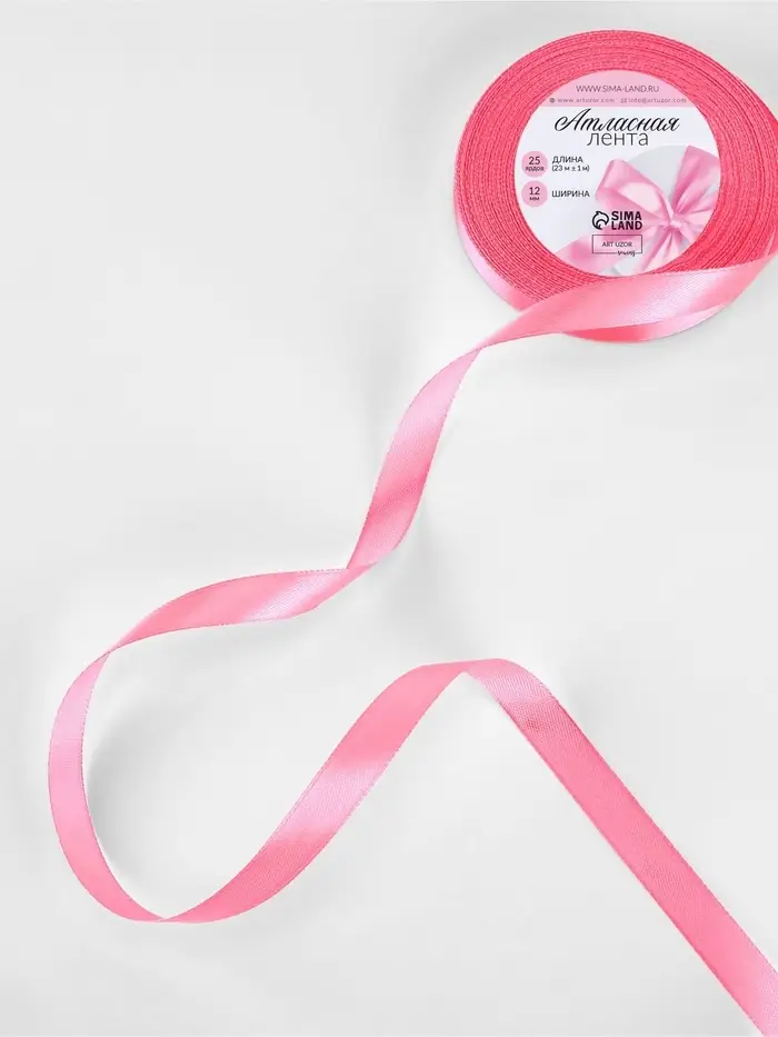 Атласная лента гладкая и приятная на ощупь. Используйте её для отделки изделий, украшения подарков, свадебного оформления, а также в техниках скрапбукинг и канзаши.