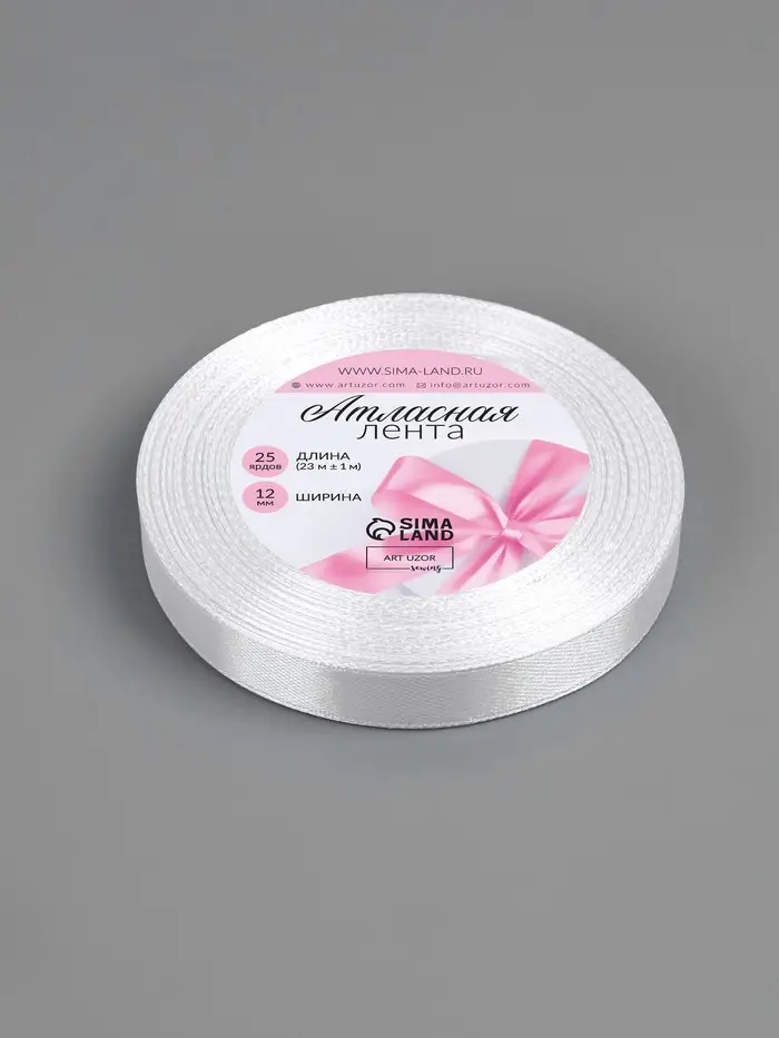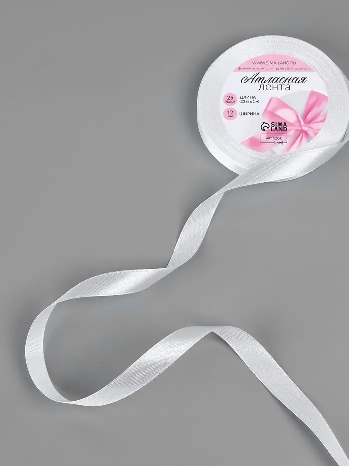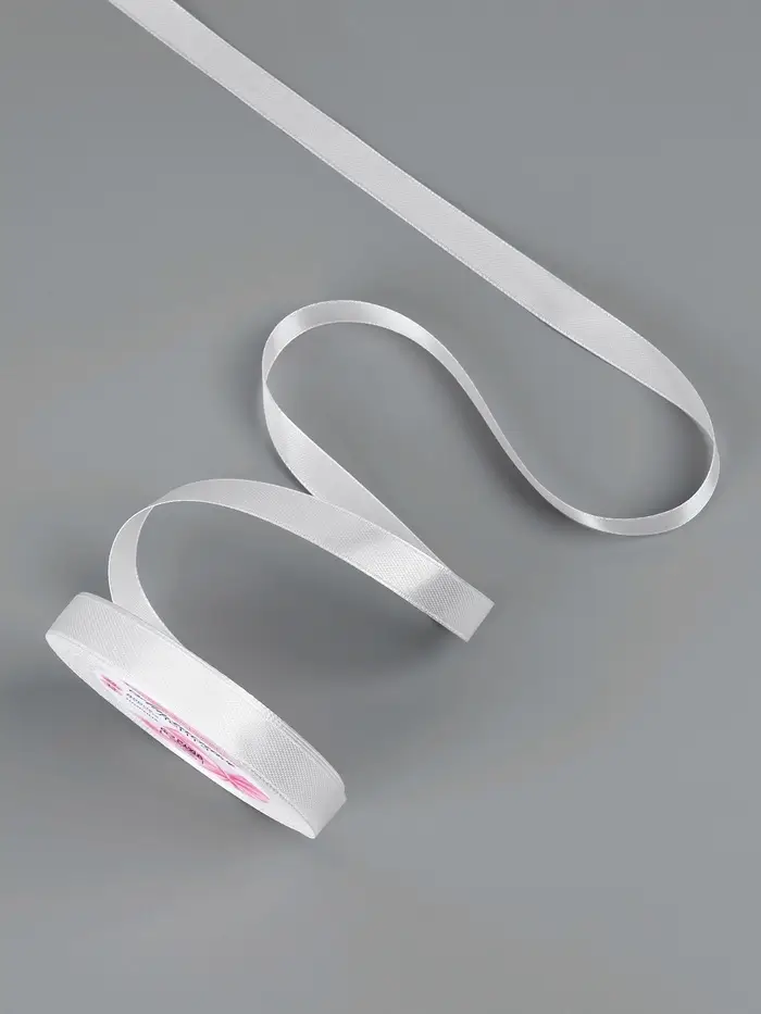 Лента атласная, 12 мм × 23 ± 1 м, цвет белый №01