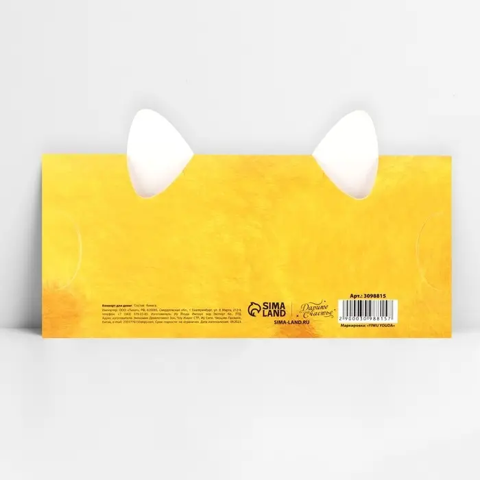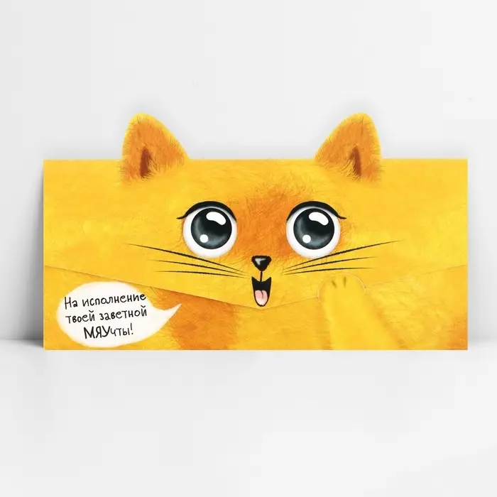 Конверт для денег фигурный «Котик», 17.5 х 8 см