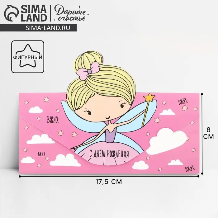 Конверт для денег фигурный «Феечка», 17.5 х 8 см