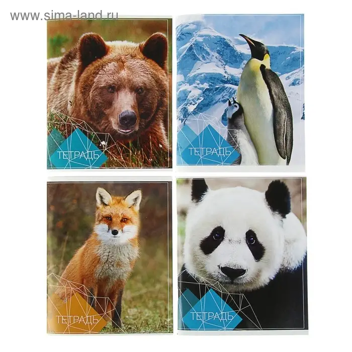Тетрадь 96 листов в клетку Calligrata «Животные», обложка мелованный картон, блок №2, белизна 75% (серые листы), МИКС