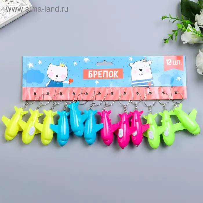Фонарик свет на кольце "Самолёт" цветной МИКС светит 2х6х5 см