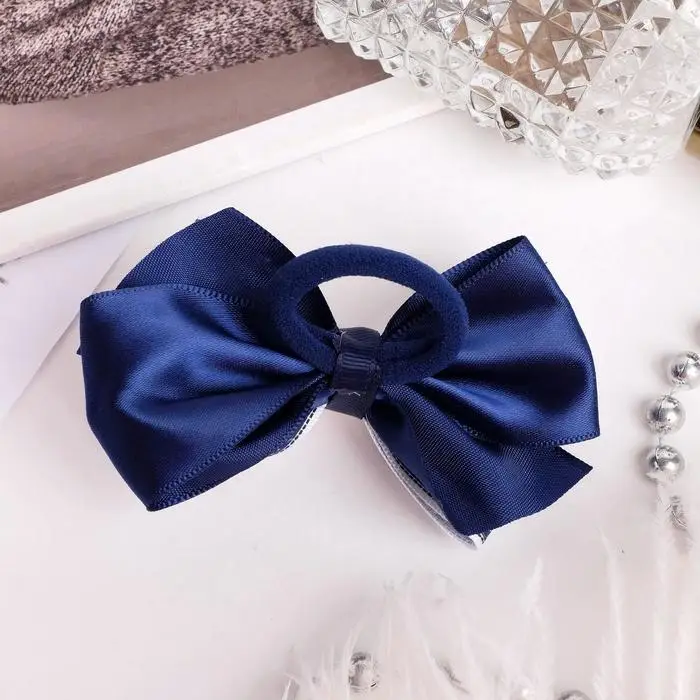 Резинка для волос бант "Школьница" текстура, 9,5 см, бело-синий