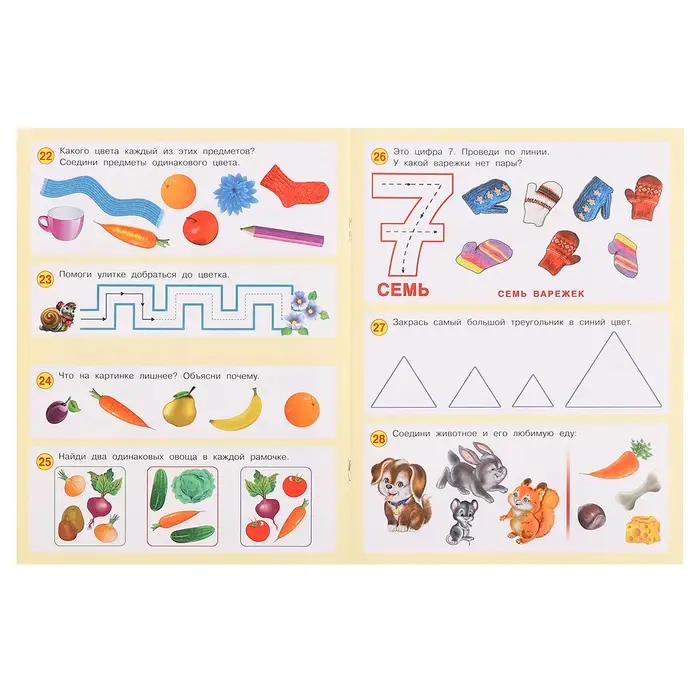 - Задания расположены по принципу «от простого к сложному», что помогает ребёнку постепенно осваивать новые навыки.