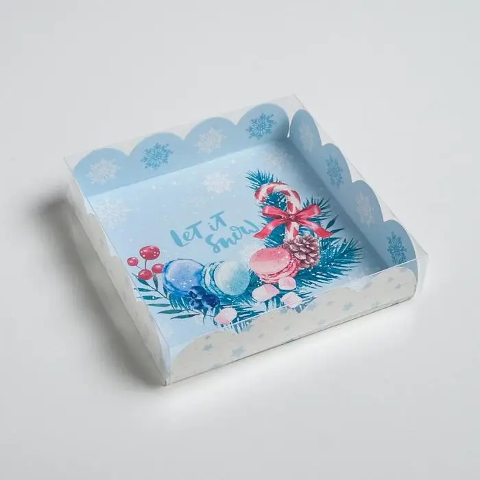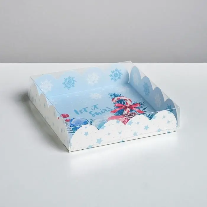 Коробка для кондитерских изделий с пластиковой крышкой «Морозное утро», 13 х 13 х 3 см