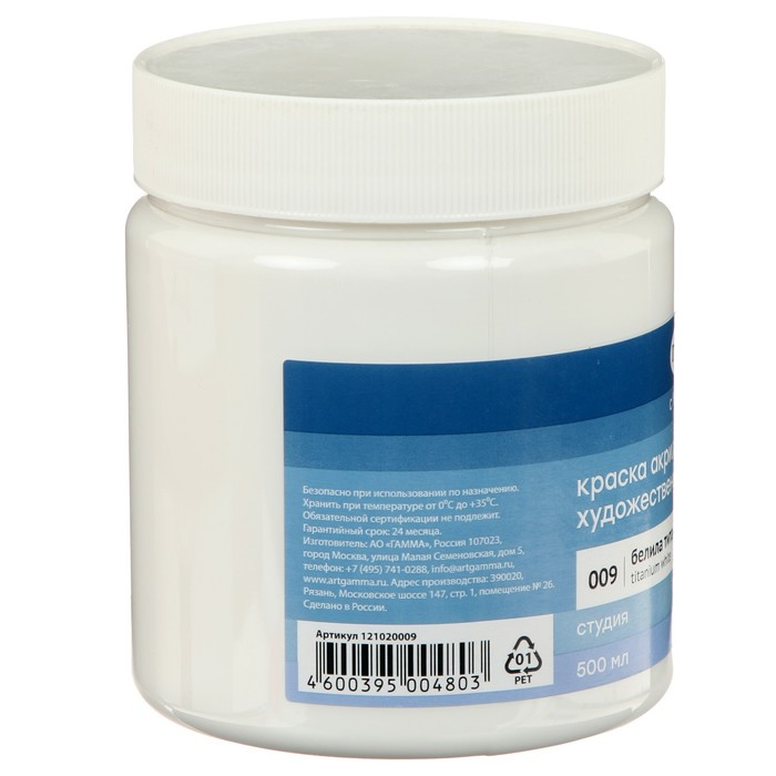 Краска акриловая Гамма "Студия", 500 мл, №009 белила титановые