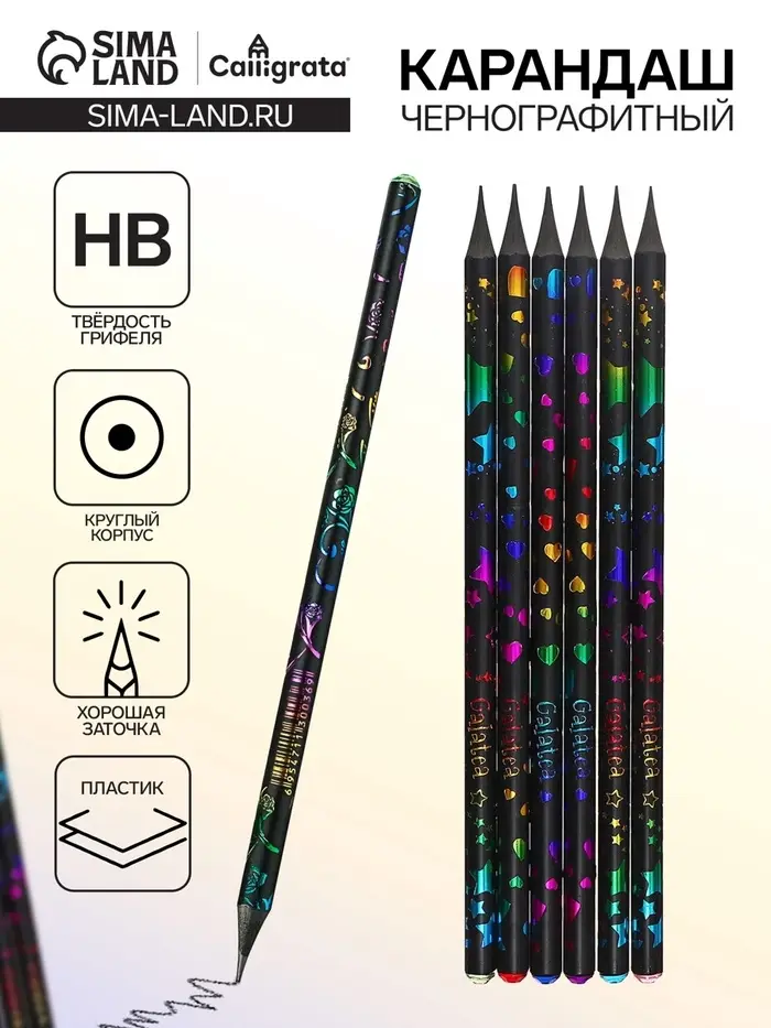 Карандаш чернографитный НВ, вечный, Calligrata, МИКС