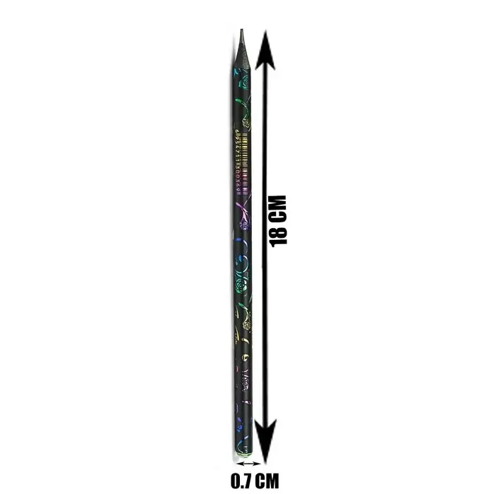 Карандаш чёрного цвета с рисунком МИКС и стразой из Акрила.
