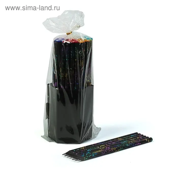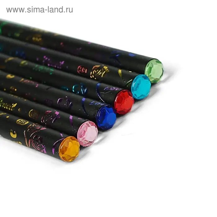 Карандаш чернографитный твёрдость HB, корпус чёрный с рисунком, заточенный, со стразой из акрила, МИКС