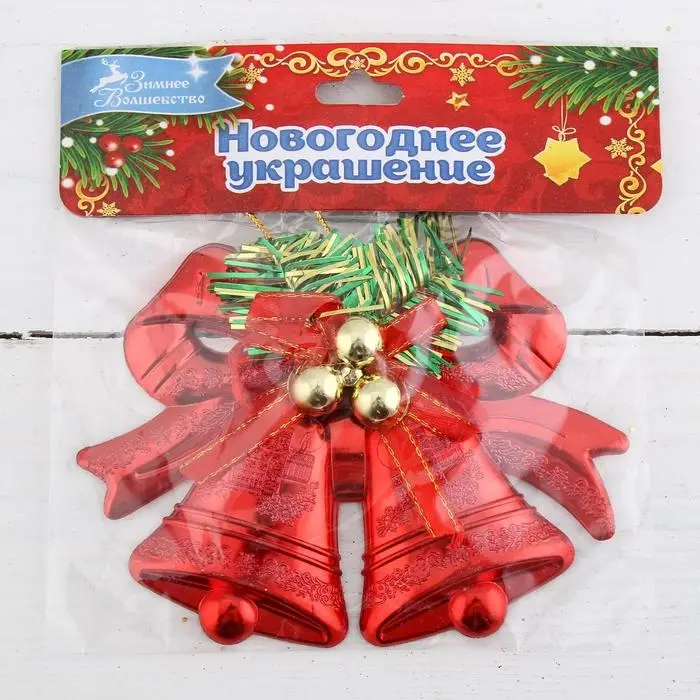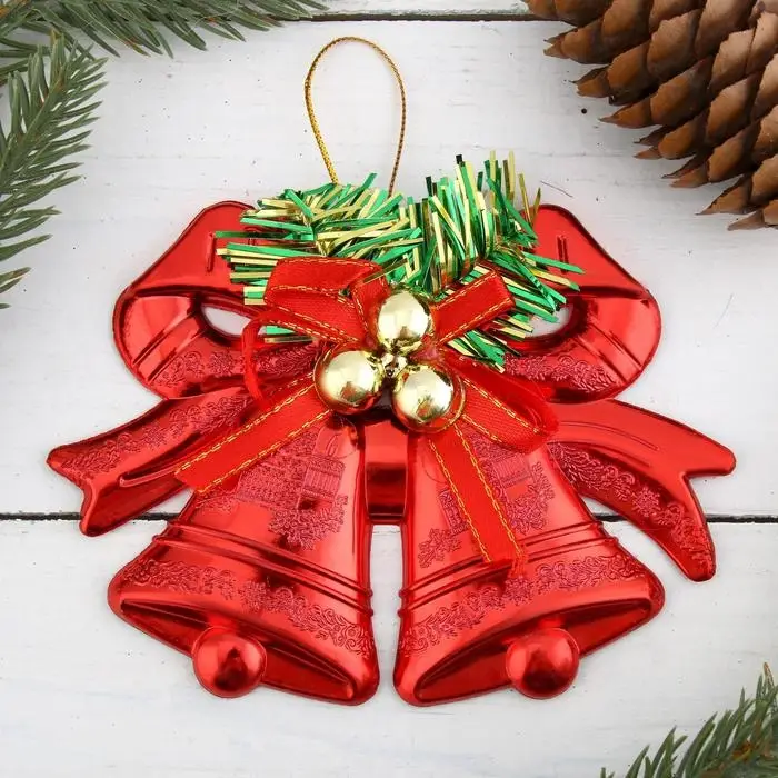 Ёлочная игрушка «Зимнее волшебство. Колокольчик двойной с шариками и лентой» пластик, 12,3х9,5 см, МИКС
