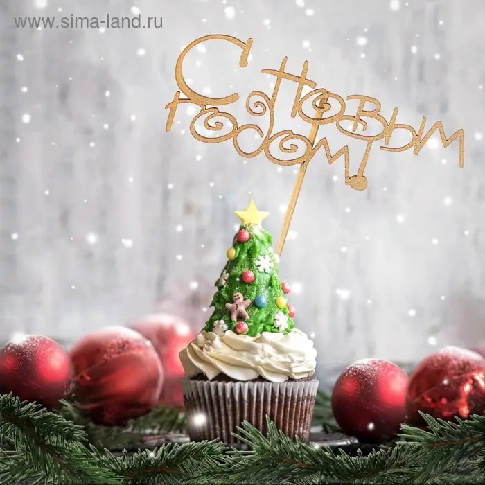 Топпер Дарим Красиво «С Новым Годом!», золотой, 12×4.5 см