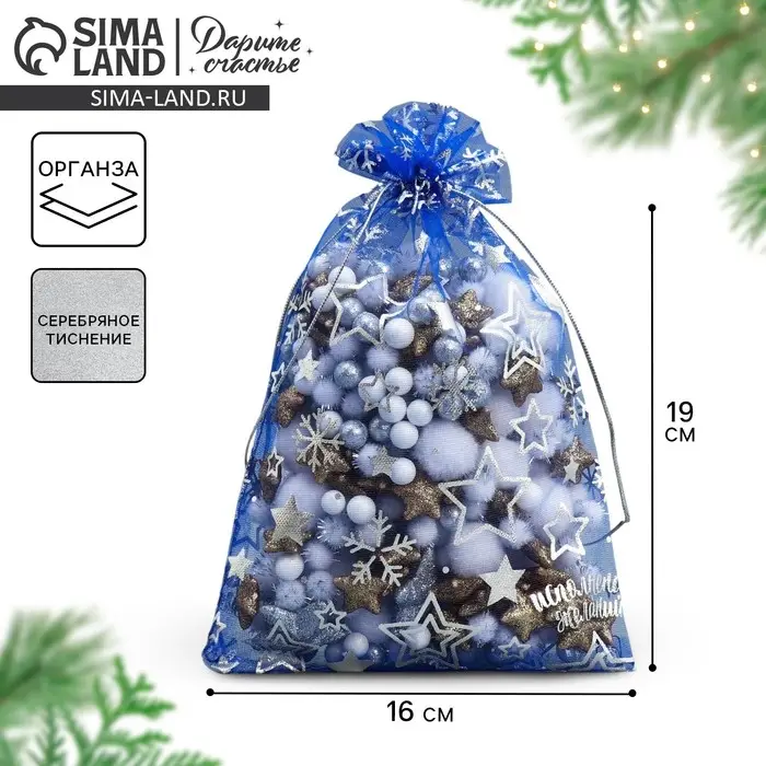 Мешочек подарочный органза «Исполнения желаний», 16 х 24 см +/- 1.5 см