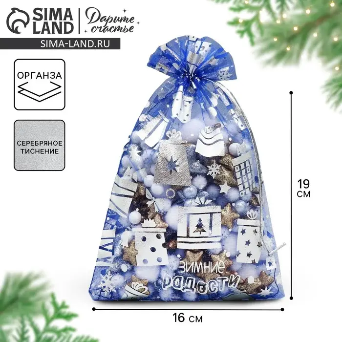 Мешочек подарочный органза «Зимние радости», 16 х 24 см +/- 1.5 см