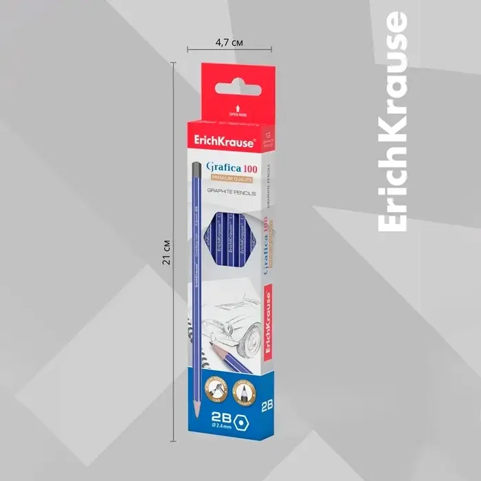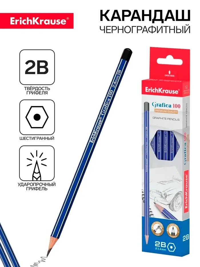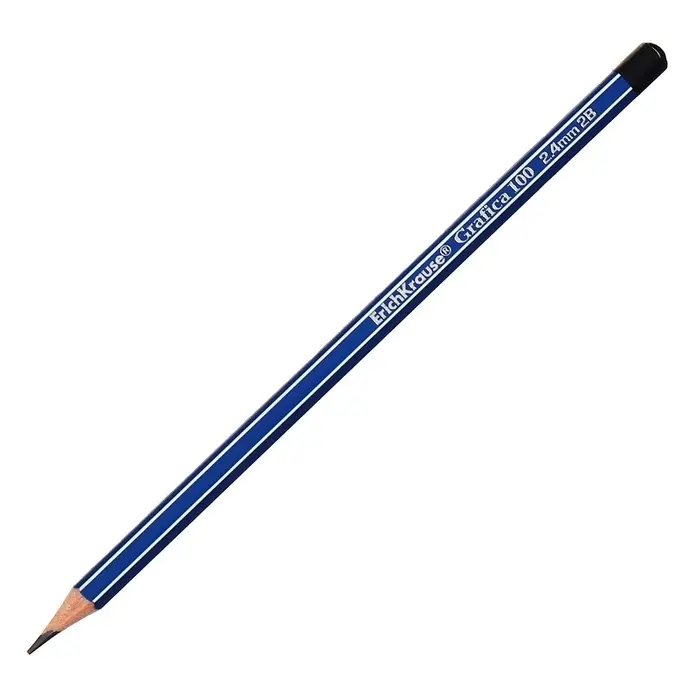 Карандаш чернографитный ErichKrause «Grafica 100», 2B, грифель d=2.2 мм, дерево, шестигранный, в коробке, синий корпус