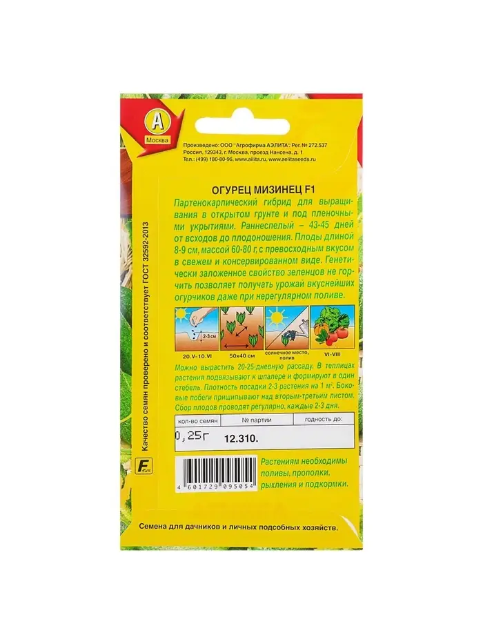 Высокоурожайный, партенокарпический гибрид для выращивания в открытом грунте и под пленочными укрытиями. По срокам созревания – раннеспелый – 43-45 дней от всходов до плодоношения. Формирует цилиндрические, мелкобугорчатые зеленцы с белым опушением, длиной 8-9 см, массой 60-80 г. Плоды имеют превосходный вкус как в свежем, так и консервированном виде. Генетически заложенное свойство зеленцов не горчить позволяет получать полноценный урожай вкуснейших огурчиков даже при нерегулярном поливе.