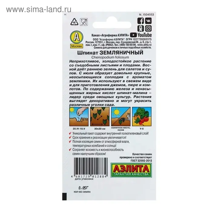 Семена Шпинат "Папай" "Лидер", 3 г ,