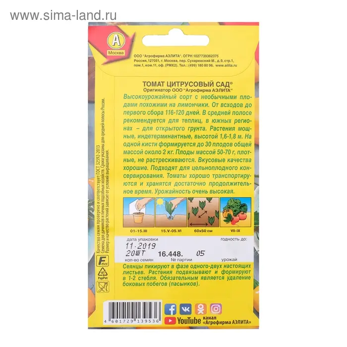 Высокоурожайный сорт с необычными плодами похожими на лимончики. От всходов до первого сбора 116-120 дней. В средней полосе рекомендуется для теплиц, в южных регионах – для открытого грунта. Растения мощные, индетерминантные, высотой 1,6-1,8 м. На одной кисти формируется до 30 плодов общей массой около 2 кг. Плоды массой 50-70 г, плотные, не растрескиваются. Вкусовые качества хорошие. Подходят для цельноплодного консервирования. Томаты хорошо транспортируются и хранятся достаточно продолжительное время. Урожайность очень высокая.