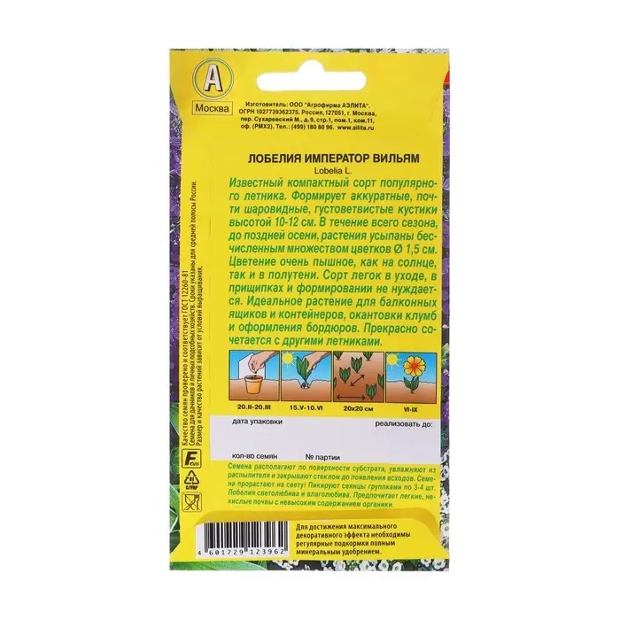 Семена цветов Лобелия "Император Вильям" О, набор 5 шт