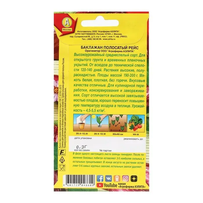 Семена Баклажан "Полосатый рейс", 0,3 г