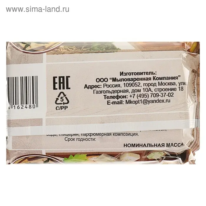 Описание: туалетное мыло в цветной пленке "Банное", 200 г.- назначение: для бани- тип кожи: для всех типов- область применения: руки- эффект: увлажнение- активный ингредиент: глицерин- не содержит: парабены, силиконы, сульфаты.