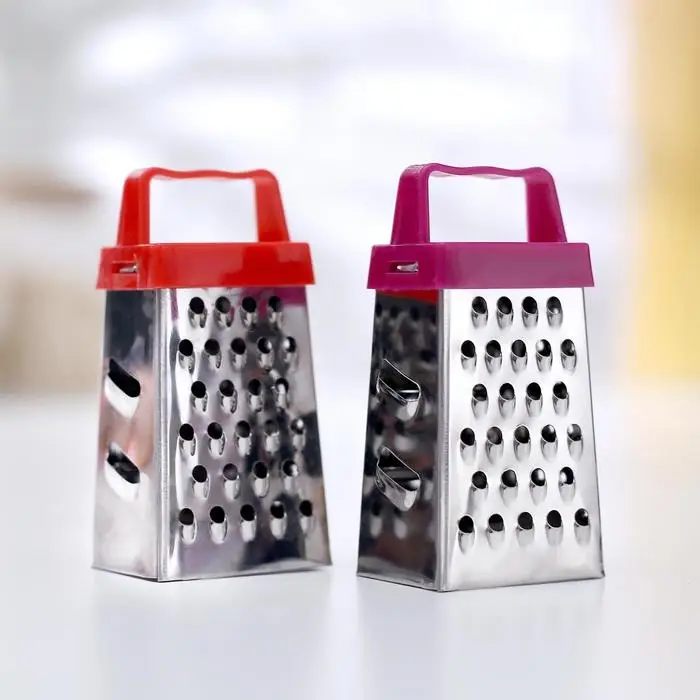 - Универсальность: тёрка имеет четыре рабочие поверхности с разным размером ячеек, что делает ее универсальным инструментом для измельчения разных продуктов.