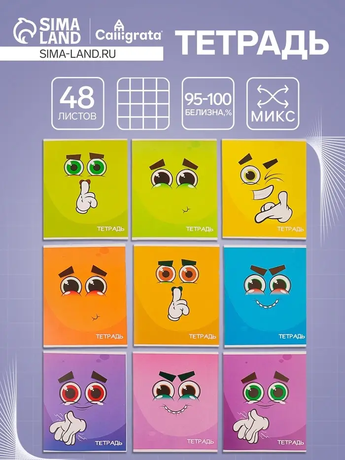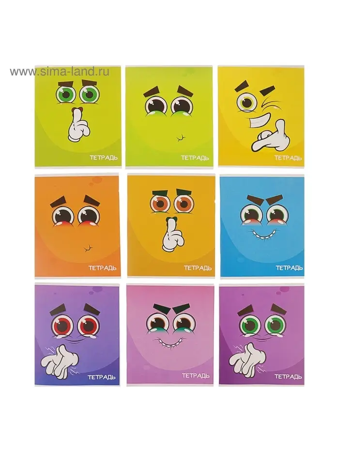 Комплект тетрадей из 10 штук (5 видов по 2 штуки), 48 листов в клетку Calligrata "Смайлики", обложка мелованный картон, блок офсет