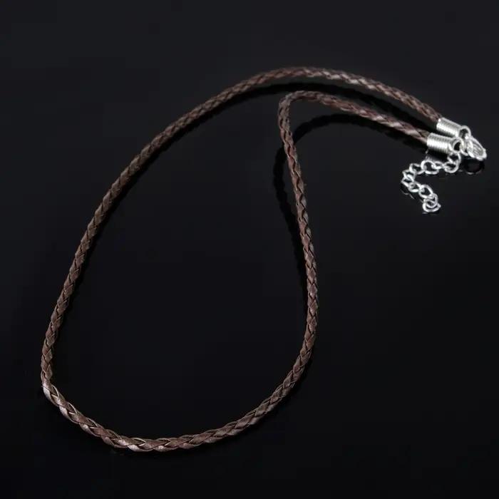 Шнурок вощёный кожаный d=3 мм, L=45 см, коричневый, косичка