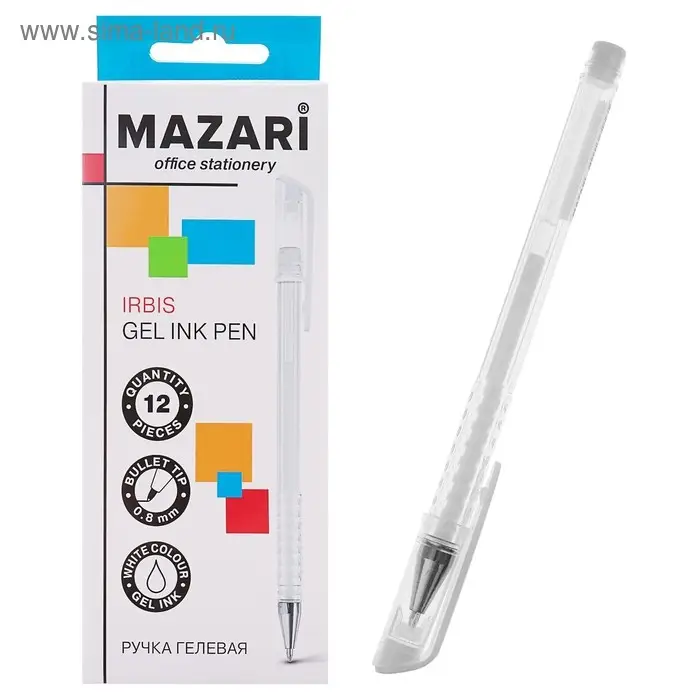Ручка гелевая IRBIS, швейцарский пишущий узел 0.8 мм, чернила белые производства США, стержень 130 мм
