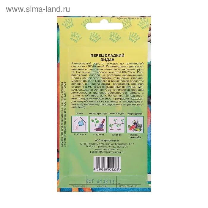 Агротехника: посев 1 – 15 марта, высадка рассады 1 - 10 июня, схема высадки 60 х 50 см, уборка урожая 15 июля - 10 сентября