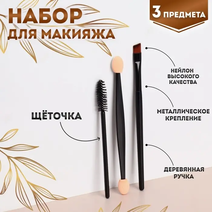 Набор для макияжа, 3 предмета, чёрный
