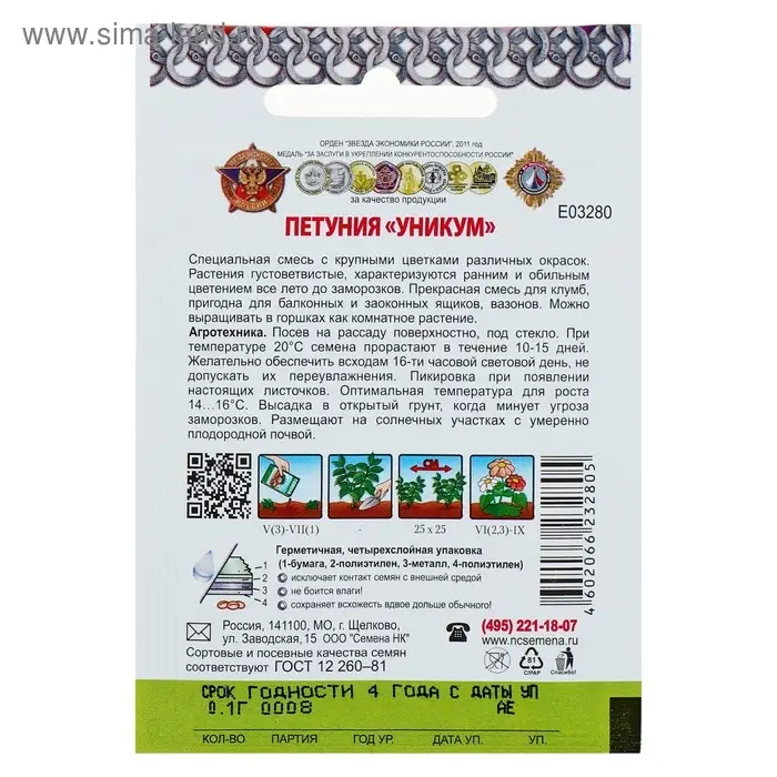 Семена цветов Петуния "Уникум" смесь, серия Кольчуга, О, 0,1 г