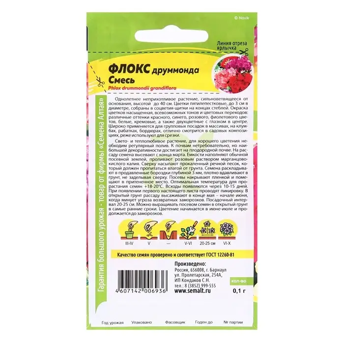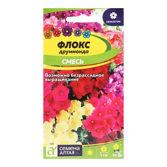 Семена цветов Флокс Друммонда "Ярмарочный микс" махровый, О, ц/п, 0,03 г