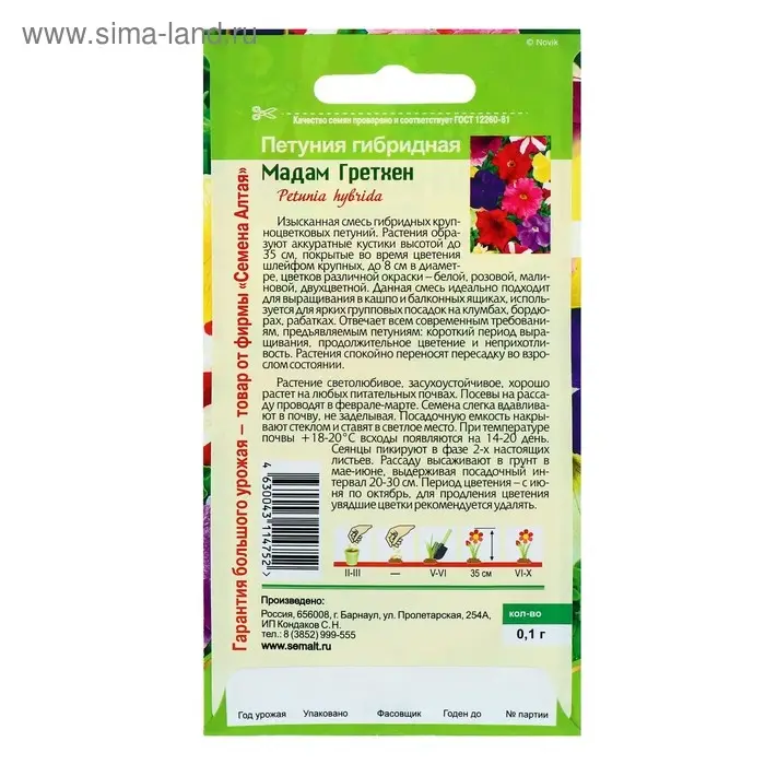 Семена цветов Петуния "Мадам Гретхен" гибридная, О, ц/п, 0,1 г