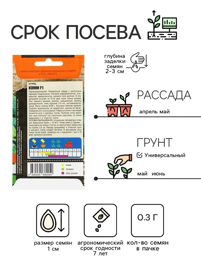 Семена Огурец "Конни" F1, скороспелый, партенокарпический, 0,3 г
