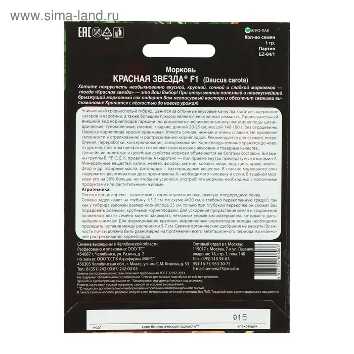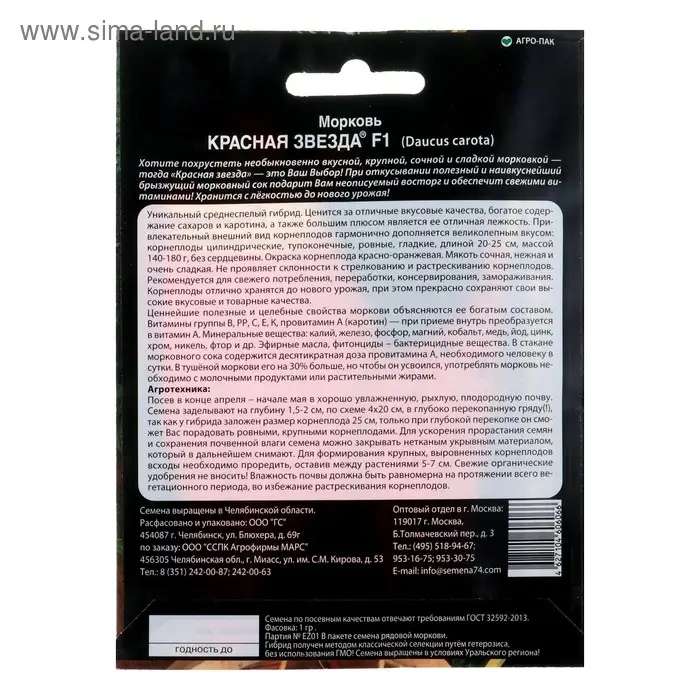 Семена Морковь "Красная звезда" F1, 1 г