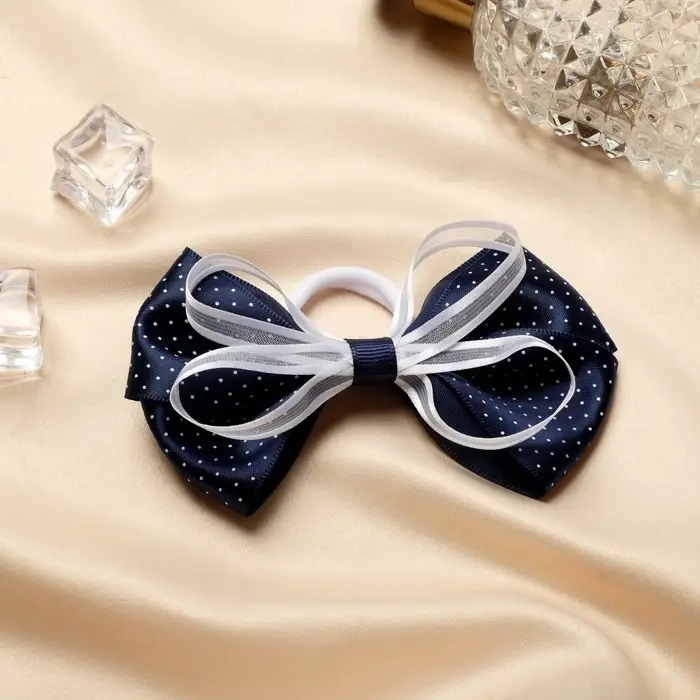 Резинка для волос "Школьница" бант окантовка, 11 см, синий