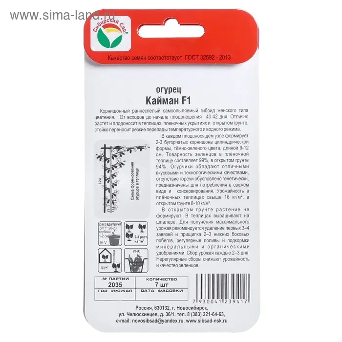 Семена Огурец "Сибирская Гирлянда" F1 скороспелый, партенокарпический, 5 шт