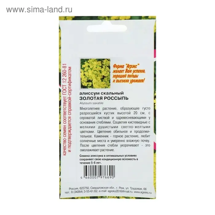 Семена цветов Алисум "Золотая россыпь", Мн, 0,1 г