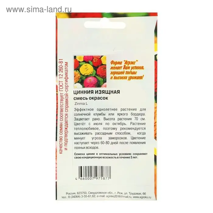 Семена цветов Цинния изящная смесь, О, 0,2 г