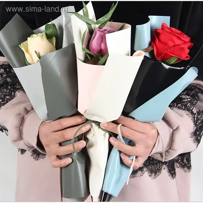 Матовая плёнка - популярная упаковка для цветов во флористике, которая придаст любому букету эстетичный, нежный и стильный вид. Преимущества: