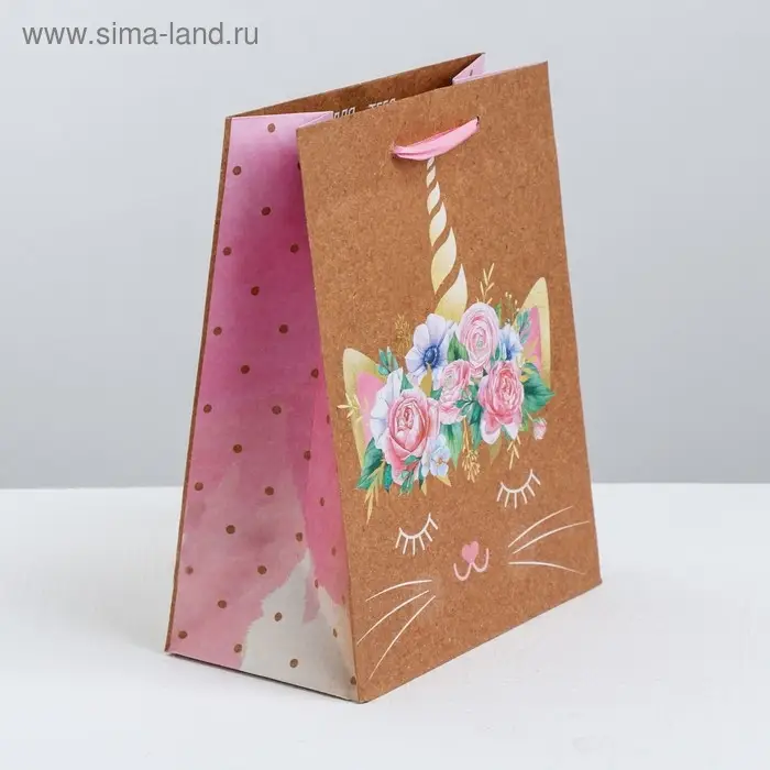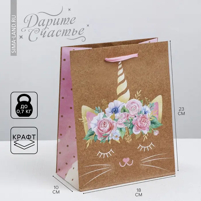 Пакет подарочный крафтовый, упаковка, «Мяу», MS 18 х 23 х 10 см