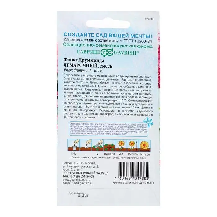 Семена цветов Флокс Друммонда "Ярмарочный микс" махровый, О, ц/п, 0,03 г